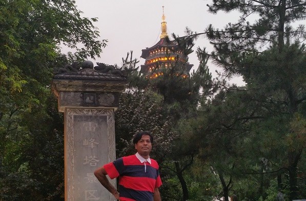 Leifeng Pagoda (Chinese: 雷峰塔; pinyin: Léifēng Tǎ) is a five story tall tower with eight sides, located on Sunset Hill south of the West Lake in Hangzhou, China. Originally constructed in the year AD 975, it collapsed in 1924 but was rebuilt in 2002. Since then, it has become a popular tourist attraction. In October 1999, the provincial and municipal governments decided to rebuild Leifeng Pagoda on top of the ruins of the old one. The new pagoda opened on 25 October 2002. It is composed of a 1400 tonne steel structure with 200 tonnes of copper parts. It contains four sightseeing elevators, and modern amenities such as air conditioning, television, and speakers. At the entrance of the pagoda, there are two autonomous escalators to carry visitors to the base of the pagoda. The original base of the pagoda is kept in good condition, as well as the artifacts discovered in the underground chamber. Hangzhou is one of the most beautiful and amazing places in the world – particularly the area around the west lake !
