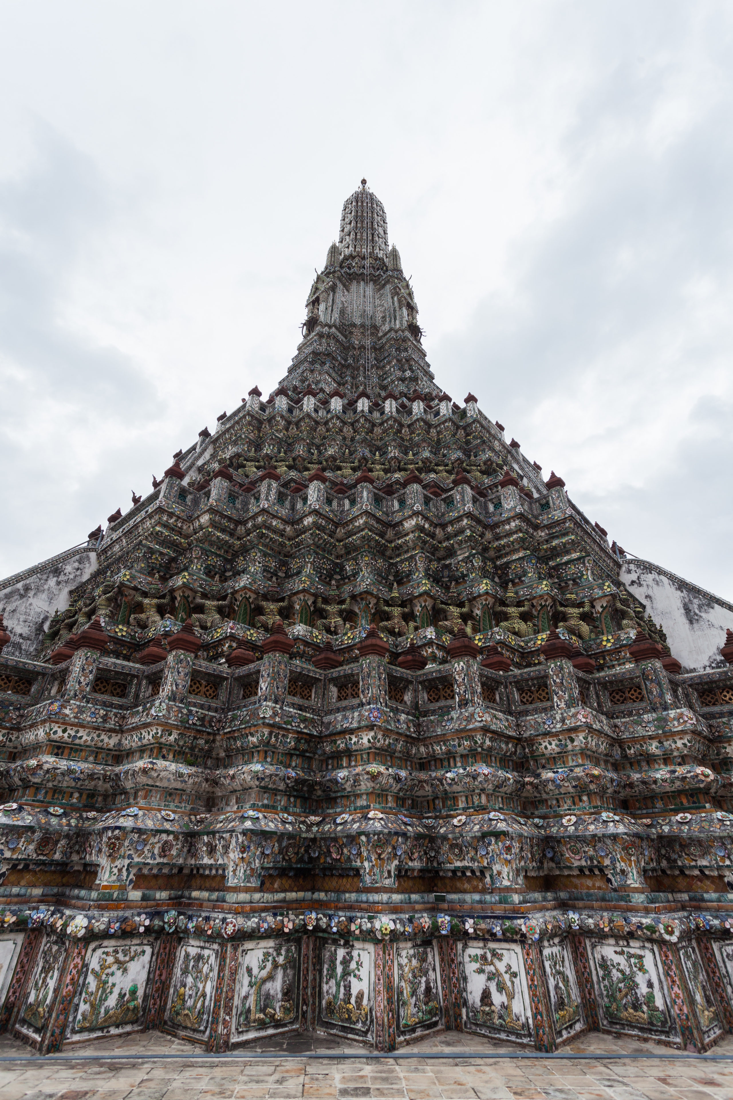- The prang are decorated by seashells and bits of porcelain which had previously been used as ballast by boats coming to Bangkok from China